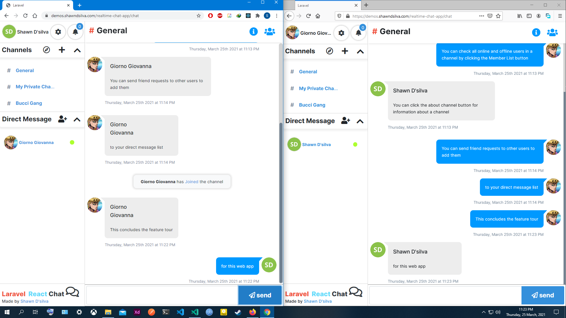 A Real Time Chat Web App made using React & Laravel, powered by WebSockets, with user to user private chats, channels for chatting between multiple users, notifications and a host of other features
