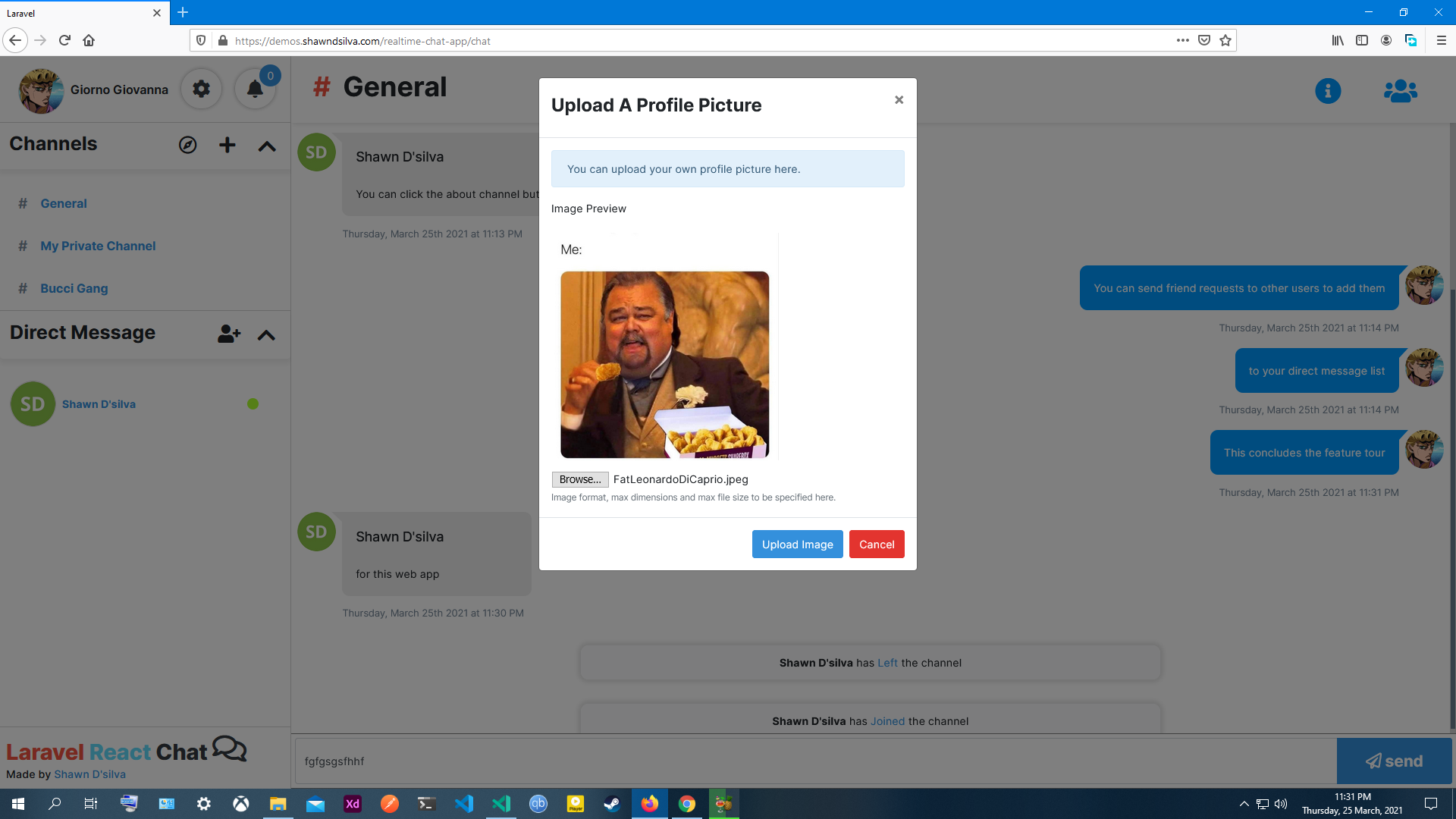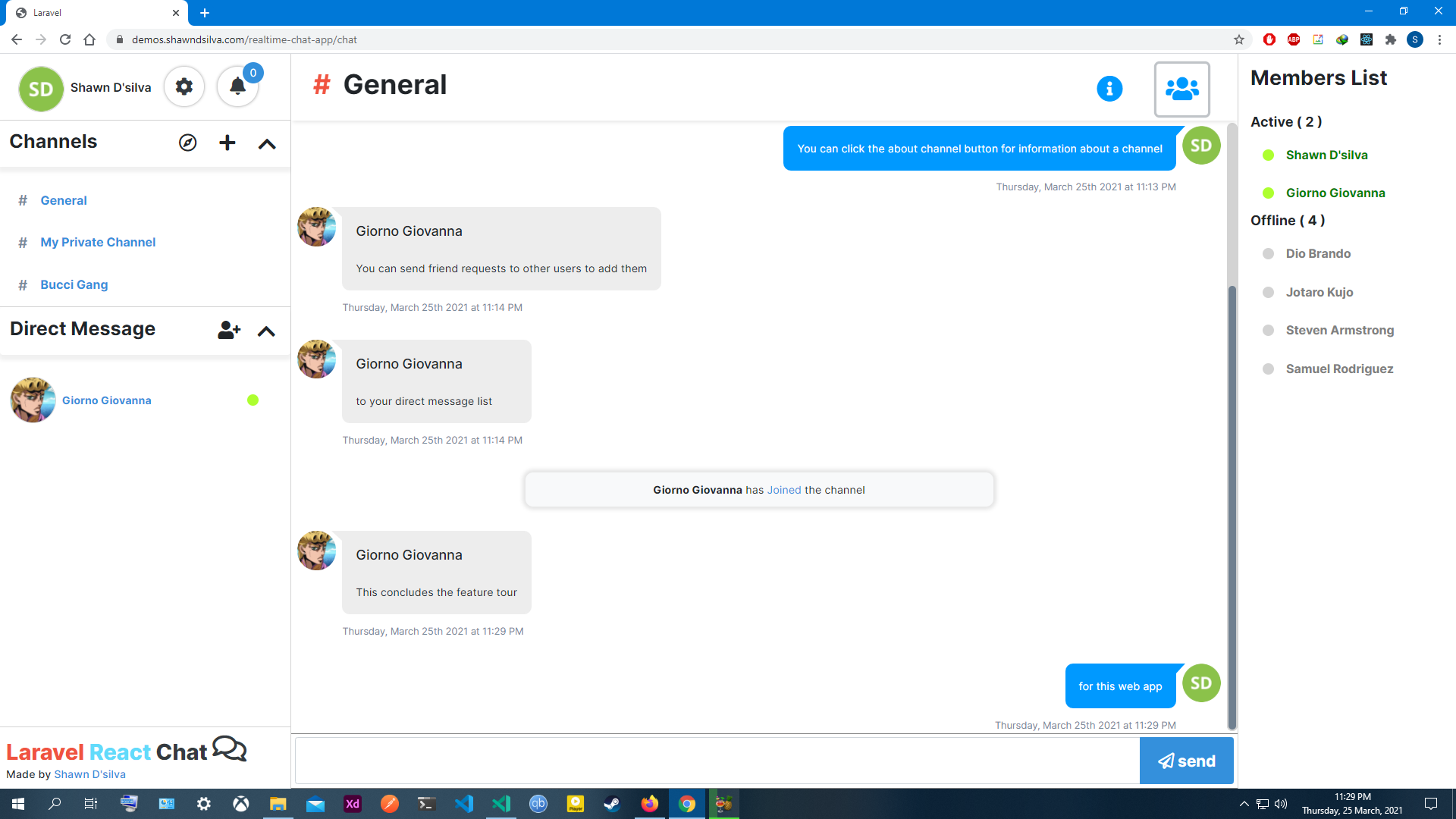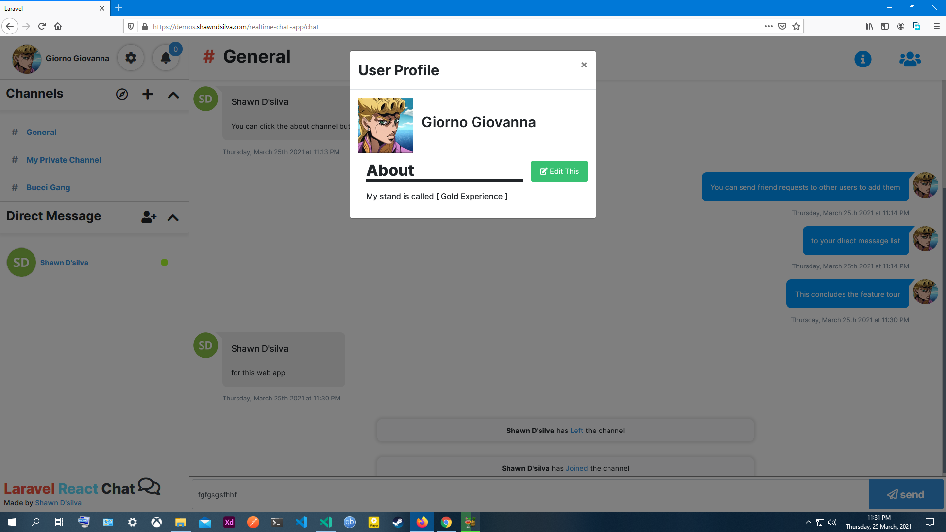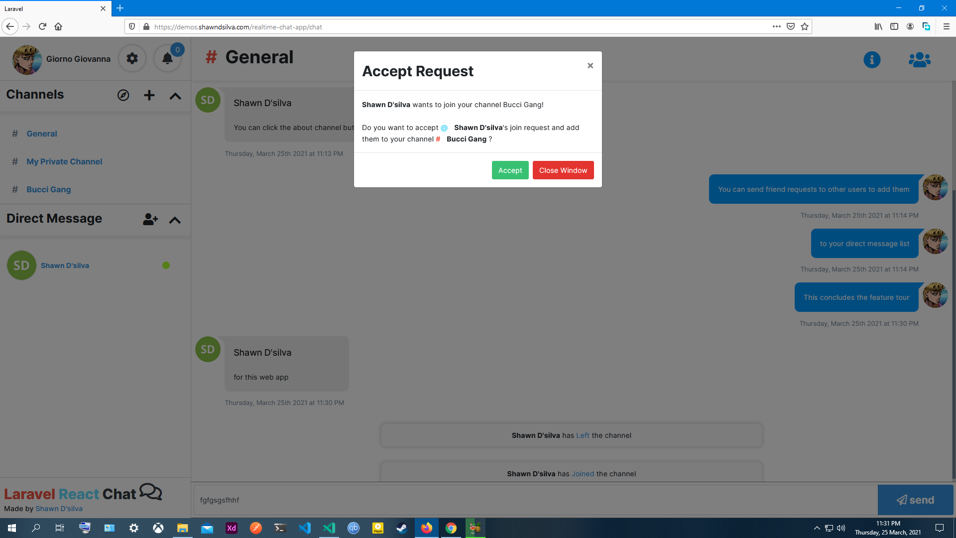 A Real Time Chat Web App made using React & Laravel, powered by WebSockets, with user to user private chats, channels for chatting between multiple users, notifications and a host of other features